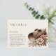 Enhance your wedding stationery with these elegant double-sided details cards, designed to complement your modern Western theme. Featuring neutral flowers and a charming cowgirl hat motif, they blend rustic charm with timeless elegance. One side provides essential reception details, ensuring guests know where to celebrate your special day, while the other side includes accommodation information for a seamless and stress-free experience. Printed on premium textured cardstock, these beautifully designed cards keep your guests informed in style.