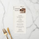 Elevate your wedding reception with these elegant double-sided menu cards, designed to complement your modern Western theme. Featuring neutral flowers and a charming cowgirl hat motif, they blend rustic charm with timeless elegance. One side showcases a thoughtfully curated dinner menu, while the other highlights the bar selection, ensuring guests enjoy every part of the celebration. Printed on premium textured cardstock, these menus add a stylish and polished touch to your special day.