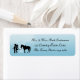 Cowboy and cowgirl country kiss with horse design silhouette over blue. Country western fairy tale address labels to compliment our invitations.