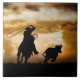 A super country western cowboy roping a steer off of his horse with a very cool cloudy stormy sky in the background.