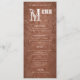 A little western feel to this sophisticated but rustic wedding dinner menu. "Menu" in decorative type over wood background with white body text. Choose your own colour tint for the wood texture wedding invitation. Click "Customise It" and use the swatches on the right to change the background colour. The eyedropper tool gives you even more swatches, and "advanced" link opens the entire spectrum. You can also copy and paste a hex value if you have one.
