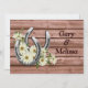 This Wedding invitation template is created using Zazzle's "RSVP card" product, size 5.5"x7.5". Comes with envalope. Fun silver horseshoes and daisies design. From the Western Wedding collection at www.zazzle.com/RanchLady*