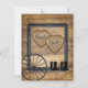 Rustic country wedding invitation with boots, wood hearts and wagon wheel. Create your own by personalising text and font.