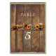 Pretty Country rustic table number card with barn wood, rustic rope border, Sunflowers, Succulents, and Horseshoes.