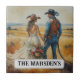 Country Western Wedding Watercolor, Ceramic Tile. Romantic painting of newlyweds in a rustic field setting, devoted to starting their lives together. This image was made in part by AI. It looks like a handmade watercolor artwork. Makes a great gift for the cowboy and cowgirl newlyweds. Just replace "The Marsden's" with their name for a very personalised wedding gift.
