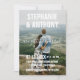 A modern green country landscape and chic white script typography photo outdoor wedding invitations. This photo Wedding invitation is the perfect and trendy design for the classy couple.