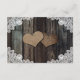 You can slip this rustic country-themed card into your wedding invitations to let out of town guests know of any hotel arrangements or group codes. Easy to personalise template. Matching items available. Rustic country wedding enclosure card featuring barn wood and floral lace in the front and two burlap hearts against a barn wood background adorned white floral lace.
