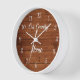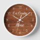 Country wood theme home decor wall clocks designed with a digitally printed wood grain look art background and trendy text you can personalise or leave as shown. Looks great in a country house, modern or contemporary home and works for any room you want to display it.