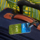 Of of the two luggage tags have some scratch on it.