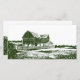 Farm house and ranch property in countryside landscape drawing in woodcut style