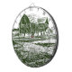 Farm house and ranch property in countryside landscape drawing in woodcut style