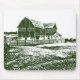 Farm house and ranch property in countryside landscape drawing in woodcut style
