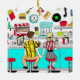Couple at Fifties Diner Holding Hands Retro Ceramic Ornament