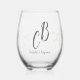 Couple Birds Monogram flowers Elegant Wedding Stemless Wine Glass