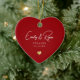 Celebrate their love with a touch of elegance! This keepsake ornament features a custom gold heart—perfect for marking an engagement or wedding. A timeless way to remember their big day!