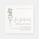 Couple Fun Facts Eucalyptus Anniversary Party. Fun Facts About is in a set elegant script. The rest of the text you can easily personalise. Watercolor eucalyptus leaves are to the left of the text.