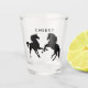 Custom Text - Cheers - Horses Couple Shot Glasses - Customisable - or Choose / Add Your Unique Text / Name / Colour / Font / Size / Elements - Make Your Special Shot Glass Gift - Resize and move or remove and add elements / text with Customisation tool ! Painting and Design by MIGNED. Please see my other projects / paintings. You can also transfer my designs to more than 1000 Zazzle products.