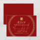 Couple initials modern Chinese wedding red frame RSVP Card