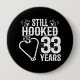 This fun 33rd wedding anniversary design is perfect for fishing couples that have been married for 33 years and are still hooked on each other & love to go fishing! Great for a 33rd wedding anniversary party to celebrate 33 years of marriage! Features "Still Hooked After 33 Years" wedding anniversary quote w/ heart shaped fish hooks with fishing graphic in a distressed vintage style design.