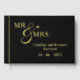 This guest book offers the perfect place for your friends and family to pen their signatures and heartfelt messages. Crafted from premium materials, it features the titles 'Mr and Mrs' in a sophisticated gold script, all set upon a chic, deep dark black background. Customise it with your family name and the date of your wedding to make it uniquely yours. This treasured memento will act as a lovely token of your special day for many years.