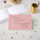 This guest book offers the perfect place for your friends and family to pen their signatures and heartfelt messages. Crafted from premium materials, it features the titles 'Mr and Mrs' in a sophisticated gold script, all set upon a chic, sophisticated blush peach pink background. Customise it with your family name and the date of your wedding to make it uniquely yours. This treasured memento will act as a lovely token of your special day for many years.