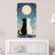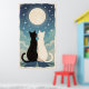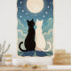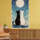 A loving couple of cats kissing under the moon against the background of a blue starry sky. Kiss under the moon. Retro illustration for congratulations on Valentine's Day or a wedding.