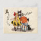 Couple of kids with carved pumpkin, Halloween Postcard
