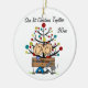 A pretty round ceramic keepsake ornament features a couple's first Christmas together! Easily add your choice of text and date to current year on this cute stick figure couple with cat and with Christmas tree design ornament. Makes a great gift idea!