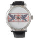 I had two concerns when ordering this watch - one that the watchband didn't look that glittery and two that the dial would be too large. Neither was a problem at all. The watch band is nice and glittery for a touch of bling. As to the size, I have small bones so I tend to like smaller looking accessories and I am quite comfortable with this. Neither too large or too small. The outside edge to edge on the dial is 1 1/4" the inside image is 1 inch.