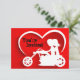 Silhouette Couple Riding a Motorcycle with a Heart Wedding Invitation in Red, White and Black. *