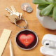 Keychain featuring a heart shape. Easy to personalise, by adding your own text.