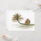 Couple Sitting on Palm Tree, A couple sits at the end of a leaning palm tree over calm water. The soft colors and simple lines create a tranquil and romantic atmosphere.