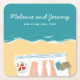 Couple Sunbathing on Beach Personalised Square Paper Coaster