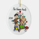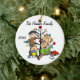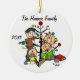 A pretty round ceramic keepsake Christmas holiday ornament features a stick figure family including a dad, mum, girl, and toddler boy as well as the family cat in front of a decorated Christmas tree with areas you can customise with your family name and the current year! This cute holiday keepsake ornament makes a great gift for the young family to commemorate a special year!