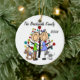 A pretty round ceramic keepsake Christmas holiday ornament features a stick figure couple and young son as well as the cat in front of a decorated Christmas tree with areas you can customise with your family name and the current year! This cute holiday keepsake ornament makes a great gift for the young family to commemorate a special year!