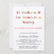 A perfect invitation for the expecting couple! This invite features "It takes 2 to make a baby" in bold multi-colour script on a ecru card with your shower information below and on the back side is a multi-colour puzzle print.