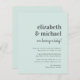 Minimal modern budget-friendly mint green couple's baby shower invitation featuring the parents' names and "are having a baby!" in soft grey trendy typography and stylish script, and the shower details in simple grey typography. You can specify the baby's gender if desired (e.g., "are having a baby boy!").
