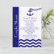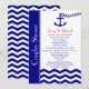 If you are planning a couples or coed wedding shower with a nautical theme, you will appreciate this nautical navy blue invitation. The design features a navy blue anchor on white with a heart chain as the focal point. The couple's names appear right below in red with the balance of the details appearing in navy blue above a chevron zigzag sea in navy blue and white. The words "Couples Shower" appear to the left. This is a fun nautical themed wedding shower invitation for couples. Copyright henishouseofpaper