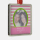 Couple's first/1st Christmas together wedding photo ornament. A lovely pink and white striped design with your photo in a green circle.