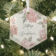 Couple's First Christmas Elegant Script Pink Peony Glass Tree Decoration