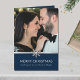 Celebrate your inaugural Christmas together as a couple with our beautifully crafted "Couple's First Christmas" folded card. The front showcases a heartwarming photo of you together, framed by an exquisite navy banner adorned with brushed silver design elements and an elegant snowflake. The sentiment "Merry Christmas Sending you joy and festive delight" encapsulates the season's spirit perfectly. Inside, you have the opportunity to add your own personal touch with a custom message, expressing your love and excitement for this special occasion. Seal it with your signature to create a lasting memory of your first Christmas as a couple. This card is a delightful way to share your happiness with loved ones and mark this significant milestone.