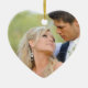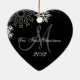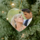 Heart-shaped Christmas Ornament. Simple Couple's First Christmas Ornament with Photo on front and monogram initial on the back with white snowflakes. Elke Clarke©. For newlyweds and parents of newly married couples as a keepsake of your wedding day. White snowflakes and and opaque band along with your wedding photo make up this stylish design. For more editing options, including making your photo fit and changing the background colours select "customise it" for the edit menu.
