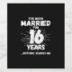 Funny 16th wedding anniversary gift for couples that have been living the married life for 16 years and have seen & heard it all and nothing scares them. Perfect for a married couple celebrating 16 years of marriage with a 16th wedding anniversary party! This novelty anniversary gag gift will get lots of laughs from your husband or wife or party guests. Features "I've Been Married For 16 Years Nothing Scares Me" funny marriage anniversary meme.