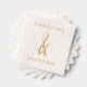 Elegant gold foiled wedding party napkins featuring a hand-drawn ampersand between the couple's names in a modern font.