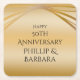 Couple's Names Golden 50th Anniversary Elegant Square Paper Coaster