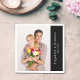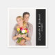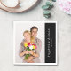This personalised design can be customised with your photo, name, and date. The hand written script typography and modern date font are placed on a black line, and the text is set vertically beside the image. The white text and black border colours can be modified in the Edit Menu.