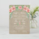 It's such fun to shower both the bride and groom with gifts and wishes as they prepare to become Mr. and Mrs. and this invitation expresses that perfectly. A worn, faded brown tan board background sets off the white lettering and baby's breath flowers in this BOHO chic style invitation suite for a wedding that is rustic, elegant and relaxed! This flower crown of blush coral pink roses, baby's breath and leaf foliage is in a loose, fun style with script calligraphy typography headings in a handwritten style (YES we can customise these for you, just message us and allow a few days to create them for you). The background is in a soft grey weathered wood with subtle swirls and a double arrow typographic divider separates the details. On the reverse side are your initials and the arrow flower design. Art copyright Audrey Jeanne Roberts, all rights reserved.