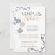 Couple's Shower | Modern Black and Gold Minimal Holiday Baubles - Original design by ©WhimsicalArtwork™ - Three black and gold striped Christmas ornaments hang at varying levels - paired with gold corner scrolling and a combination of hand written script calligraphy and a contemporary font make this a very unique avant-garde wedding invitation suite - customise with your information easily - this is part of the Modern Black and Gold Minimal Holiday Baubles Collection A combination of script calligraphy combined with a minimalist, contemporary style text layout makes it a trending style wedding suite. This is part of a wedding stationery collection with matching wedding accessories by the BarefootBride™.