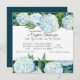 Couples Shower Peacock Blue White Hydrangea Floral Invitation