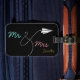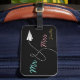 Front side: paper aeroplane with dotted line on black (custom colour) and Mr. & Mrs., or his and her initial letters, and the family name. Back: additional information